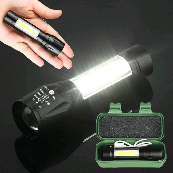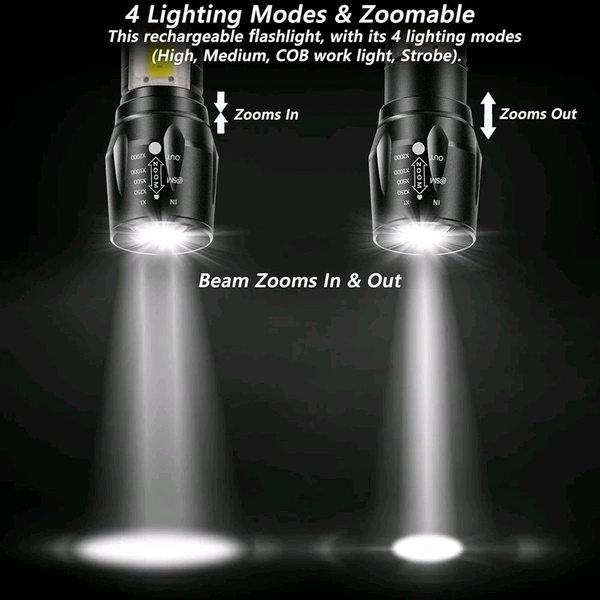 JBIYA LED Emergency Handheld Flashlight USB Rechargeable Flashlight 3 Modes Adjustable Focus,Portable Waterproof LED Flashlight with COB Side Lights,Best Tactical Torch for Hurricane (1pack)