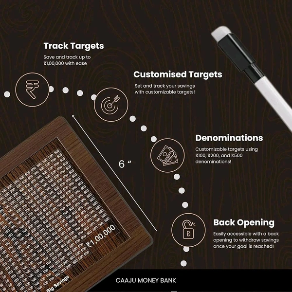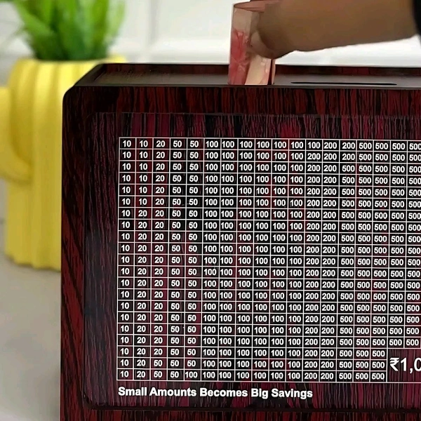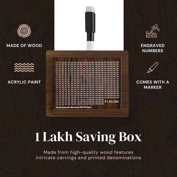 Money Bank with Amount 100000 Piggy Bank for Girls and Boys - Carved Wooden Money Saving Box - Money Box Gullak for Adults