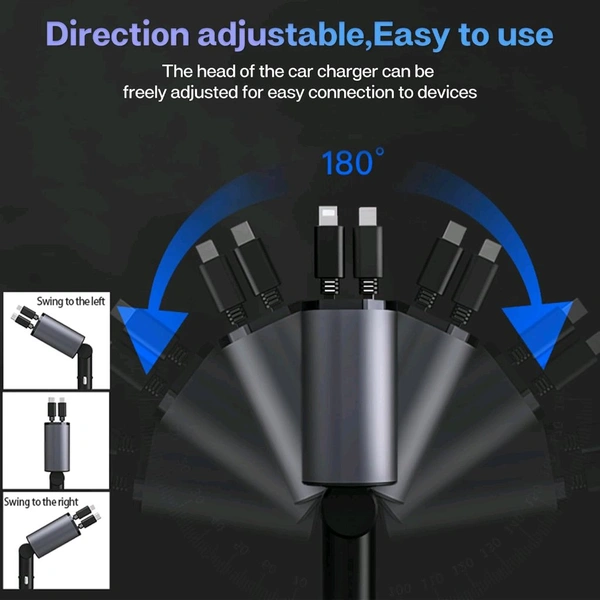 Retractable Car Charger with 100W, 4 in 1 Car Fast Charger for iPhone and Type C, Retractable Cables (31.5 inch) and 2 Charging Ports, Compatible with iPhone 15/14/13/12 Pro Max XR,iPad,Samsung,Pixel